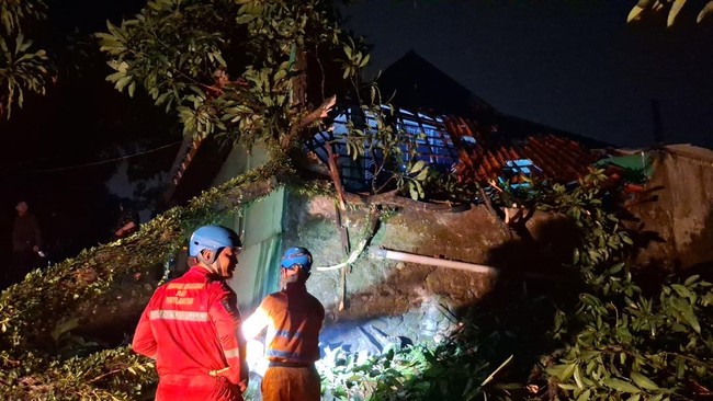 "Kondisi memang lagi hujan cuma nggak gede, angin juga nggak kencang. Tiba-tiba tumbang, pohon kabembeum. Kondisinya memang doyong pohonnya, umur pohon juga udah lama, puluhan tahun. Nggak ada luka, cuma atap aja rusak," kata Baban ditemui di lokasi.
