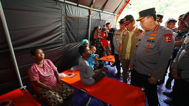 Kapolri dan rombongan meninjau posko pengungsian sebagai tindak lanjut dari arahan Presiden Prabowo Subianto agar pemerintah pusat responsif menangani para korban yang terdampak erupsi Gunung Lewotobi.