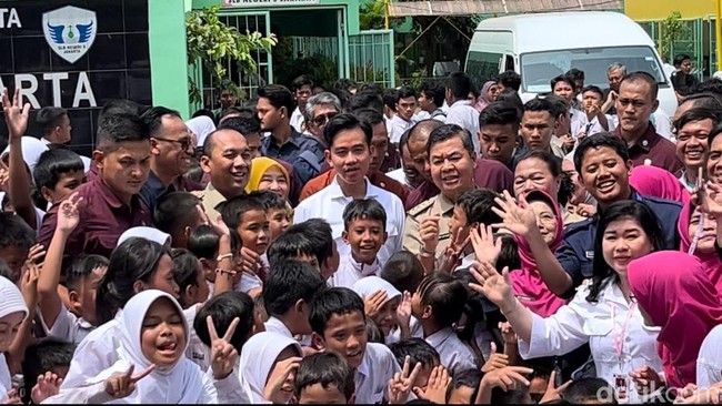 Wakil Presiden RI Gibran Rakabuming Raka menyambangi SLBN 5 dan SDN 15 Slipi Pagi Jakarta Barat untuk meninjau makan bergizi gratis. Gibran langsung disambut warga yang menunggu di depan sekolah.