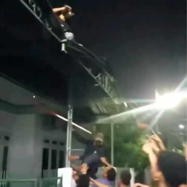Video momen penangkapan pelaku viral di medsos. Tampak warga mengejar lalu menghajar pelaku ketika jatuh dari atap rumah warga.