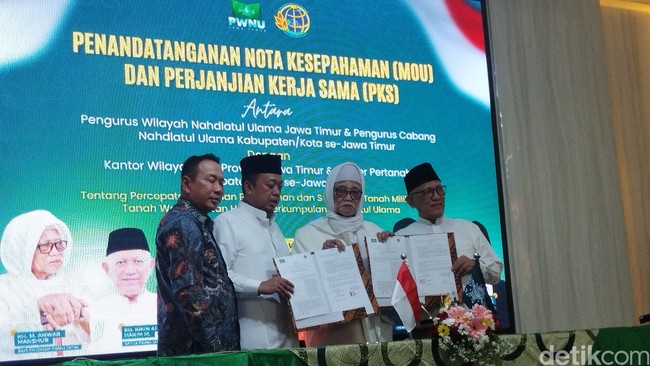 Penandatanganan kerja sama itu dilakukan di Kantor PWNU Jatim, Surabaya, dan dihadiri pengurus PCNU se-Jawa Timur serta perwakilan Kepala Kantor Pertanahan di kabupaten kota se-Jawa Timur.