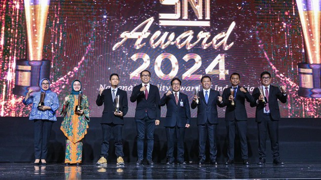 Adapun SNI Awards merupakan ajang penghargaan yang diselenggarakan oleh Badan Standardisasi Nasional (BSN) dalam rangkaian Bulan Mutu Nasional (BMN) pada Kamis (21/11). Tahun ini, SNI Awards mengusung tema "Standardisasi untuk Transformasi Ekonomi yang Berkelanjutan".