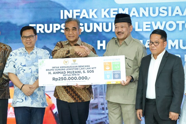 Di Gedung Baznas, Matraman, Jakarta, bantuan tersebut langsung diterima oleh Ketua Baznas Prof Dr KH Noor Achmad. Di hadapan para pimpinan Baznas dan undangan lain dalam acara 'Infak Kemanusiaan Bencana Erupsi Gunung Lewotobi Laki-Laki NTT', Muzani mengatakan tolong-menolong, gotong-royong, dan saling memberi adalah tradisi bangsa Indonesia.