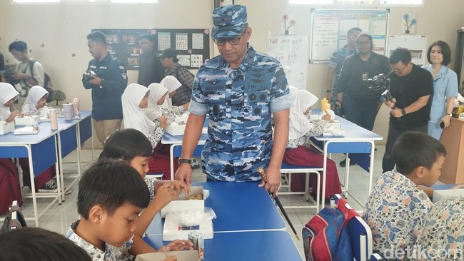 Muzafar terlihat meninjau pelaksanaan uji coba Makan Bergizi Gratis di SDS Angkasa 5, kompleks Lanud Halim Perdanakusuma, Jakarta Timur. Dia menyapa siswa SDS Angkasa 5 yang tengah menyantap makan di dalam ruang kelas.