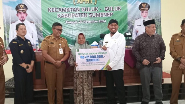 Bupati Sumenep, Achmad Fauzi Wongsojudo menyerahkan santunan Jaminan Kematian (JKM) kepada keluarga petani dan buruh tani di tiga desa. Santunan ini diharapkan dapat meringankan beban keluarga yang ditinggalkan dan meningkatkan kesadaran akan pentingnya jaminan sosial.