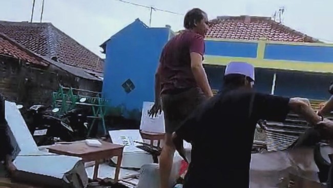 Tempat Pemungutan Suara (TPS) 21 Citangkil, Cilegon ambruk diterjang hujan disertai angin. Pemungutan suara dipindah ke lokasi yang lebih aman.