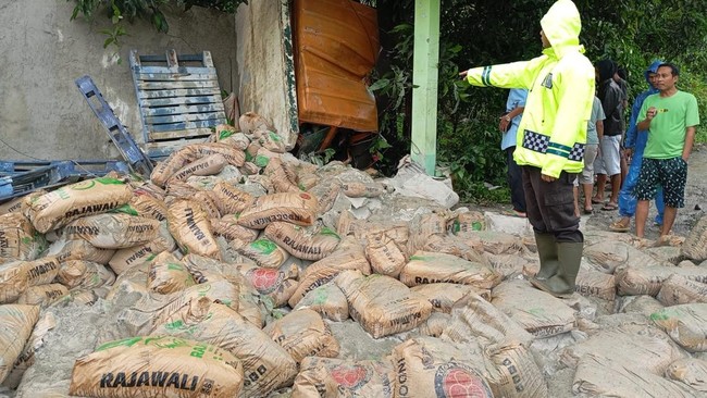 Mobil truk pengangkut semen mengalami kecelakaan tunggal di jalan raya Muncul-Picung tepatnya di Kampung Supakalas, Desa Ciherang, Kecamatan Picung, Pandeglang, Banten. Polisi menyebut penyebab kecelakaan adalah rem blong.