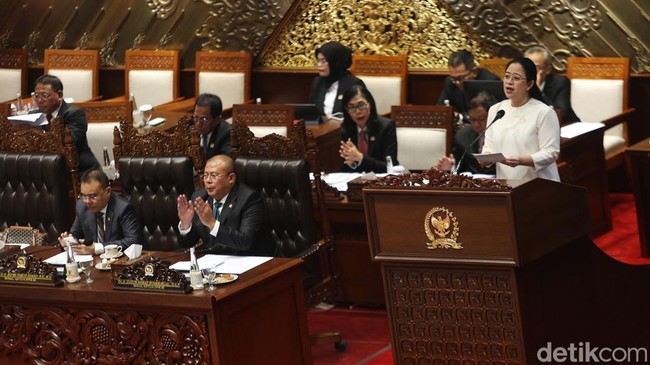 Ketua DPR Puan Maharani menyampaikan pidato dalam rapat paripurna penutupan masa sidang akhir tahun. Dia menyoroti sejumlah permasalahan mulai dari PHK massal hingga Pilkada serentak.