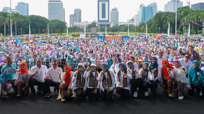 Puluhan ribu kader PKK memadati Monas untuk mengikuti Fun Run dan Fun Walk yang merupakan bagian dari rangkaian Peringatan Hari Ibu (PHI) 2024. Acara ini mengusung kampanye anti KDRT, perlindungan anak, dan pemberdayaan perempuan.