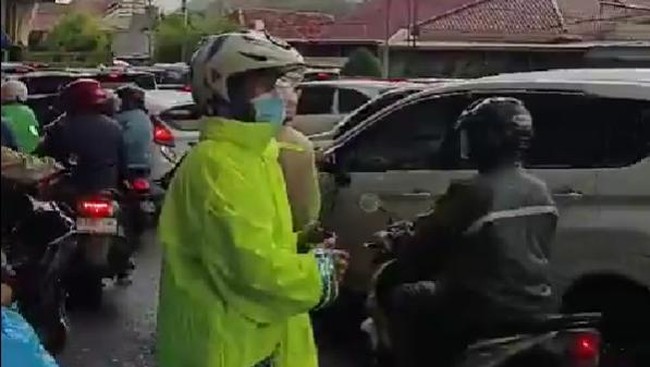 Sementara itu lalu lintas yang mengarah Jl. Jiung Kemayoran terpantau ramai lancar. Dilaporkan saat ini cuaca di sekitar lokasi gerimis.