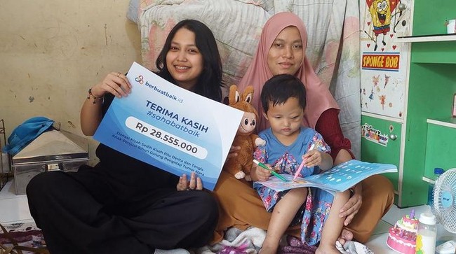 Bantuan donasi yang telah terkumpul sebanyak Rp 28.555.000 digunakan untuk pengobatan dan kebutuhan Arumi. #sahabatbaik, donasi yang diberikan menjadi berkah yang luar biasa bagi mereka. Kabar baiknya, semua donasi yang diberikan seluruhnya akan sampai ke penerima 100% tanpa ada potongan.
