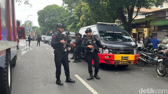 Pantauan detikcom, Selasa (10/12/2024) sekitar pukul 17.30 WIB, kepulan asap masih terlihat di sekitar lokasi. Anggota Gegana terlihat mengamankan lokasi kejadian.