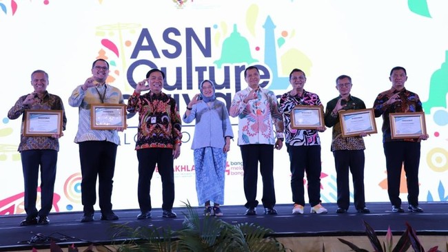 ASN Culture Festival 2024 kembali digelar di Jakarta, hari ini. Pada Pesta Budaya Kerja yang digelar sejak tahun 2021 ini, Menteri Pendayagunaan Aparatur Negara dan Reformasi Birokrasi (PANRB) Rini Widyantini menyerahkan Penghargaan Skor Indeks BerAKHLAK Terbaik Tahun 2024.
