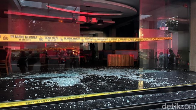 Bahkan pada pintu masuk gedung itu tampak sepihan kaca akibat ledakan berserakan. Namun belum diketahui kronologi pasti peristiwa tersebut.