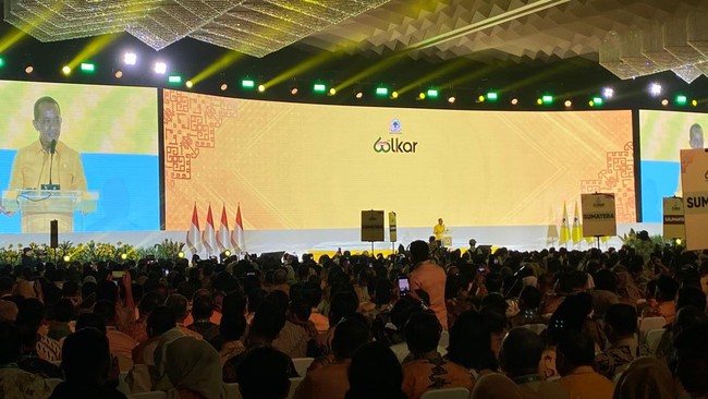 "Satu Menko, satu gubernur tanpa pilkada, yaitu Gubernur Lemhannas, 3 wakil menteri. Saya tadi tanya kepada para senior. Terutama Bang Ical, yang hadir di sini yang mantan Ketua Umum Bang Ical. 'Bang waktu Abang jadi Ketum berapa menterinya?" ujar Bahlil.