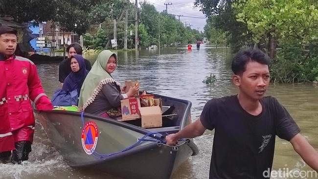 Banjir yang melanda Desa Jombok, Kesamben, Jombang, Jawa Timur, belum surut sejak 5 hari lalu. Sebanyak 70 jiwa korban banjir bertahan di pengungsian.