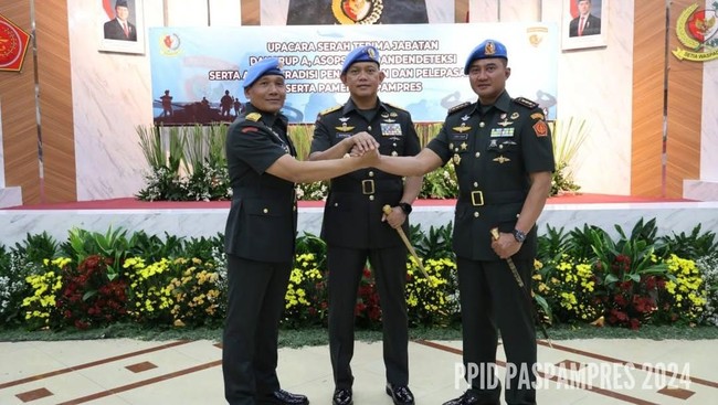 Komandan Paspampres Mayor Jenderal Achiruddin memimpin upacara serah terima jabatan Komandan Grup (Dangrup) A Paspampres dari Brigjen Wimoko ke Kolonel Inf Farid Yudho Dwi Laksono. Kolonel Farid bakal menjadi perisai hidup Presiden Prabowo Subianto.