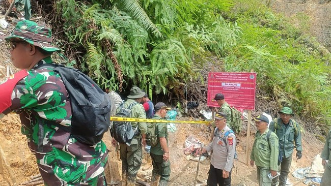 Petugas juga memasang papan larangan untuk tidak melaksanakan penambangan tanpa izin lagi. Garis polisi juga terpasang di sekitar lokasi.