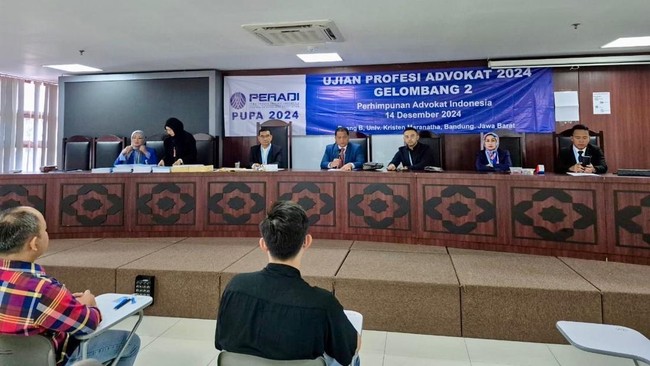 "Peserta terbanyak adalah di Jakarta, lebih dari 1.000, mendekati 1.100 yang diselenggarakan di Universitas Tarumanagara," kata Ketua Panitia Ujian Profesi Advokat (PUPA) yang juga selaku Ketua Harian DPN Peradi R. Dwiyanto Prihartono dalam keterangan tertulis, Sabtu (14/12/2024).
