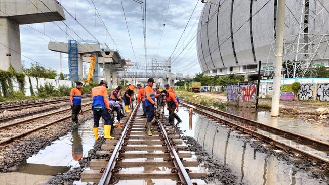 Selain itu, KAI sedang melakukan pembongkaran trotoar dan penghilangan titik penghalang untuk melancarkan aliran air pada saluran yang terdampak.