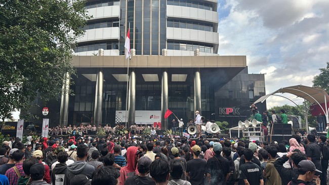 Massa aksi berkumpul sejak pukul 12.00 WIB di depan KPK sambil membawa spanduk dan poster, yang di antaranya bertulisan 'KPK Jangan Tunduk pada Tekanan Politik!' dan 'Tangkap Harun Masiku!'.