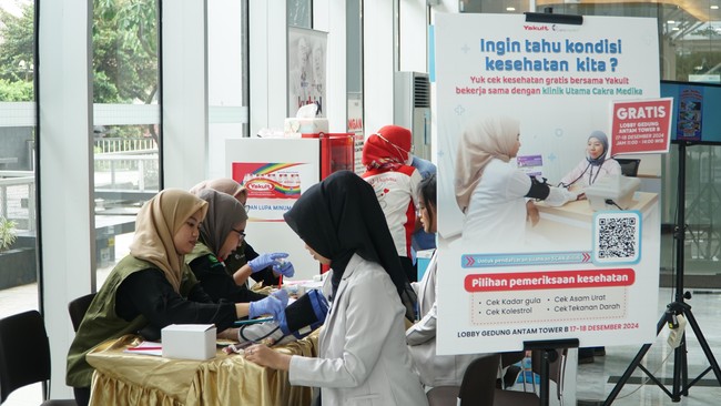 Sebagai bentuk apresiasi atas kepercayaan masyarakat, PT Yakult Indonesia Persada menyelenggarakan pemeriksaan kesehatan gratis di area Antam Office Park, Jagakarsa, Jakarta Selatan. Pemeriksaan yang berlangsung pada 17-18 Desember 2024 ini diperuntukkan bagi karyawan yang berkantor di Antam Office Park dan warga sekitar.
