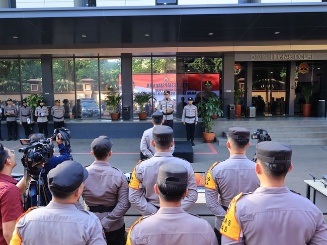 Divisi Humas Polri menggelar Apel Kesiapan Satgas Humas Operasi Lilin 2024 dalam rangka pengamanan Natal 2024 dan tahun baru 2025. Puncak arus mudik diperkirakan terjadi pada 21 dan 28 Desember mendatang, sementara arus balik pada 29 Desember dan 1 Januari.