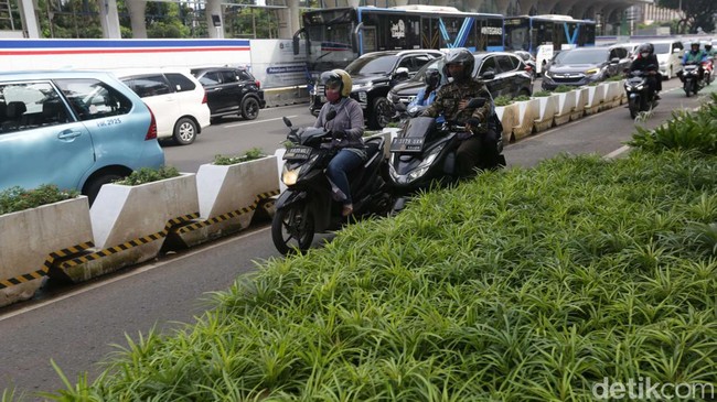 Terlihat juga seorang driver ojol yang membawa penumpang melaju di jalur sepeda. Driver ojol itu tampak mencoba menyusul para pesepeda. Pesepeda tersebut tampak merekam aksi driver ojol tersebut.