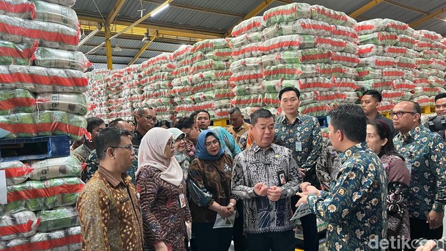 "Hari ini teman-teman bisa melihat bagaimana beras di gudang kami sangat banyak, cukup aman," ucap Gunarso.
