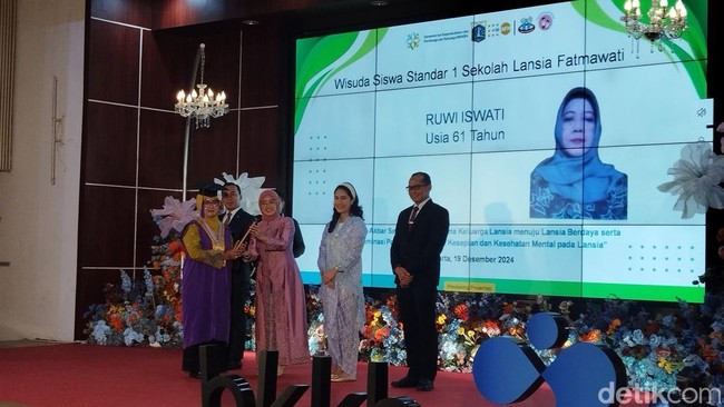 Kegiatan wisuda itu merupakan bagian dari Wisuda Akbar Sekolah Lansia di Bina Keluarga Lansia yang dilakukan di Kantor BKKBN, Halim, Jakarta Timur, Kamis (19/12/2024). Wihaji mengaku bahagia bisa hadir dalam acara wisuda. Dia mengatakan rumus hidup panjang adalah bahagia.