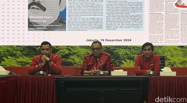 "Menurut kami, sesuatu yang bersifat anomali. Di mana di berbagai tempat kita melihat bertebarannya sepanduk-sepanduk yang menyerang kehormatan dan kewibawaan partai, khususnya mempertanyakan tentang legalitas dari DPP PDI Perjuangan," kata Deddy dalam jumpa pers di kantor DPP Perjuangan, Menteng, Jakarta Pusat, Kamis (19/12/2024).