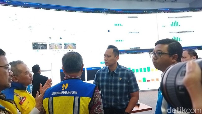 Menko Infrastruktur dan Pembangunan Kewilayahan, Agus Harimurti Yudhoyono (AHY) meninjau Kantor Jasa Marga Toll Road Command Center (JMTC) Jatiasih, Bekasi. AHY melihat secara langsung situasi arus lalu lintas di beberapa ruas tol jelang libur natal 2024 dan tahun baru 2025.
