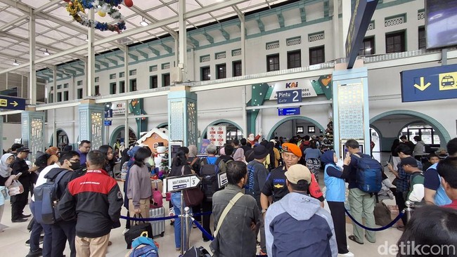 Pantauan detikcom, Sabtu (21/12/2024), Stasiun Gambir dipadati penumpang yang akan bepergian. Para penumpang tampak membawa koper maupun tas dengan ukuran yang besar.