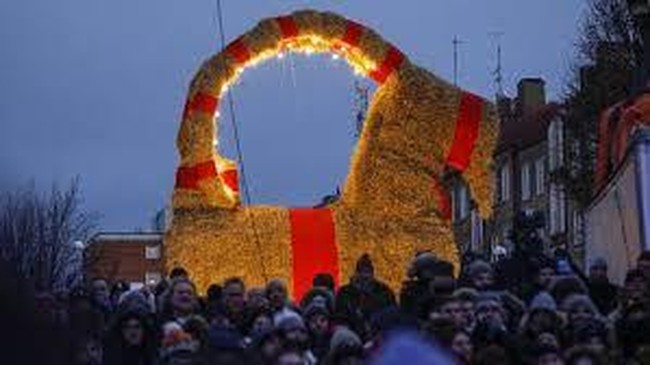 Salah satunya yang tetap merawat tradisi ini yakni orang-orang di Kota Gävle di Swedia Utara. Mereka membangun kambing jerami raksasa setinggi 14 meter (hampir 50 kaki) yang dipajang di alun-alun utama.