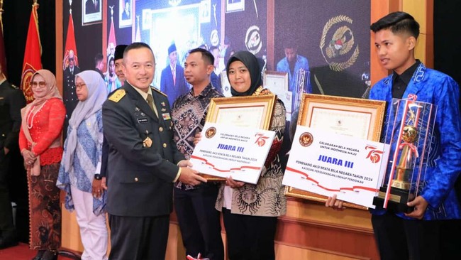 Penghargaan tersebut dianugerahkan oleh Kementerian Pertahanan RI (Kemhan) melalui Direktorat Jenderal Potensi Pertahanan dalam peringatan Hari Bela Negara ke-76.