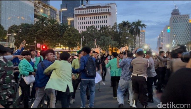 Pantauan detikcom di lokasi, sekitar Patung Arjuna Wijaya, seberang Monas, Jakarta Pusat, Kamis (26/12/2024), mulanya, Polisi meminta massa aksi membubarkan diri lantaran waktu untuk menyampaikan aspirasi telah selesai. Polisi pun mengimbau massa aksi untuk tertib melaksanakan aturan yang ada.