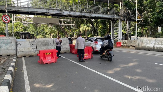 Lalu lintas ke arah Harmoni sebagian sudah mulai ditutup dengan beton dan kawat berduri. Sejumlah aparat kepolisian terlihat berjaga di sekitar lokasi aksi.
