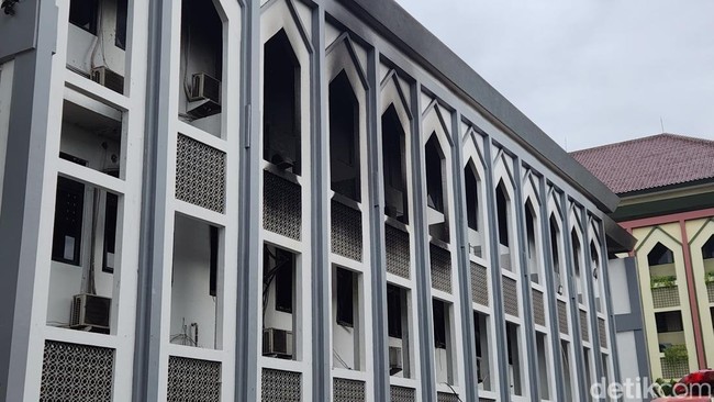 Sejumlah kaca gedung terlihat hancur. Mesin AC luar ruangan juga terlihat hangus. Belum ada kegiatan yang terlihat di sekitar gedung rektorat tersebut.