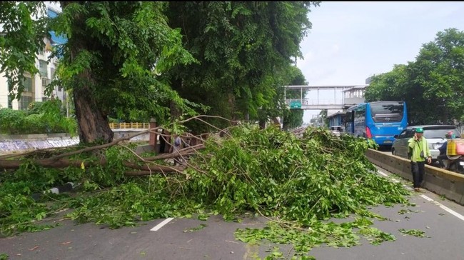 Hal tersebut diinformasikan melalui akun media Traffic Management Center (TMC) Polda Metro Jaya. Dalam postingan terlihat dahan pohon yang tumbang menutup seluruh ruas jalan.