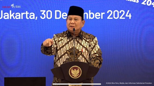 Sindiran itu disampaikan Prabowo dalam pengarahannya di acara Musrenbangnas RPJMN 2025-2029 di Bappenas, Jakarta Pusat, Senin (30/12/2024). Prabowo tiba-tiba menyinggung hakim yang memvonis ringan terdakwa yang merugikan negara ratusan triliun rupiah.