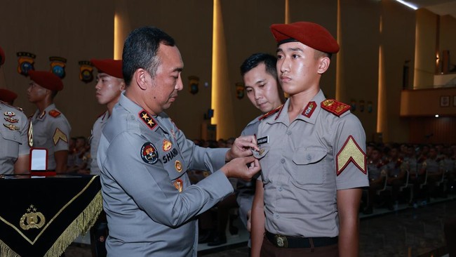 Kepala Divisi Hubungan Masyarakat (Kadiv Humas) Polri Irjen Sandi Nugroho memberikan apresiasi dan menyematkan pin brevet Pelopor Kehumasan ke 10 Taruna Akademi Kepolisian (Akpol). Penerima merupakan peraih nilai terbaik saat Sertifikasi Pengetahuan Umum Kehumasan melalui Aplikasi e-Learning Humas Polri Presisi.