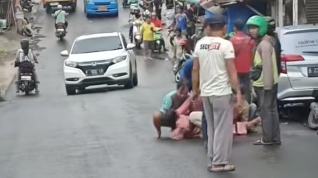 Saksi di lokasi bernama Alfian (24) mengatakan insiden itu terjadi sekitar pukul 11.30 WIB tadi. Dia mulanya melihat seorang warga tersangkut saat berkendara sepeda motor.