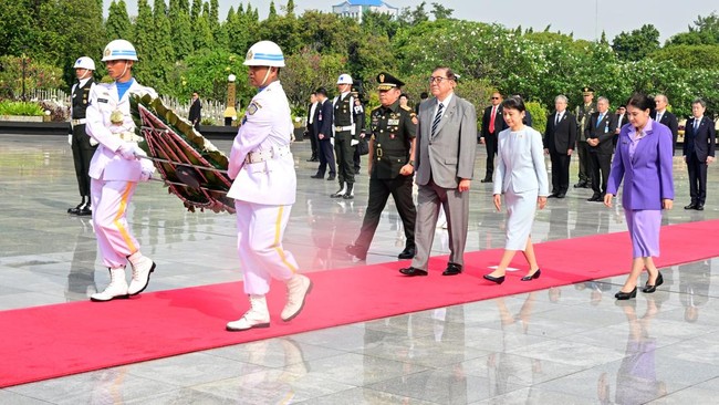PM Ishiba dan istri kemudian membungkukkan badan serta menundukkan kepala untuk memberikan penghormatan kepada para pahlawan Indonesia yang telah gugur. Gestur penghormatan tersebut menjadi simbol rasa hormat dan persahabatan yang erat antara kedua negara.
