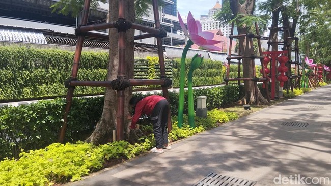Permainan viral ini membuat warga mencari keberadaan koin yang bisa ditukarkan dengan rupiah. Distamhut Jakarta memasang pembatas mencegah tanaman rusak.