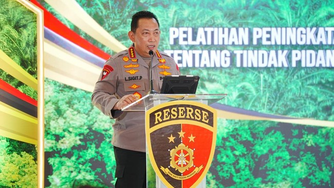 Kapolri Jenderal Listyo Sigit Prabowo menghadiri kegiatan pelatihan peningkatan kemampuan penyidik dan penyidik pembantu tindak pidana di bidang perkebunan dan kehutanan. Kapolri menegaskan acara tersebut sangat penting dalam rangka mendukung kebijakan Presiden Prabowo Subianto untuk mencegah potensi kebocoran anggaran negara.