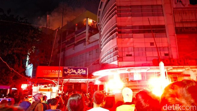 Glodok Plaza, Taman Sari, Jakarta Barat, kebakaran. Api mulai merambat ke lantai 6.