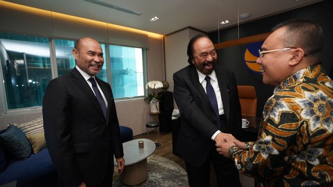"Hari ini ada peresmian ruang fraksi yang habis direnovasi, ruangan fraksi NasDem, ya kita pimpinan DPR diundang. Sebagai Ketua Umum mungkin ada Pak Surya di sini, tadi kita sempat bincang-bincang sedikit sambil makan lontong Medan yang enak," kata Dasco di Kompleks Parlemen, Senayan, Jakarta Pusat, Senin (20/1/2025).