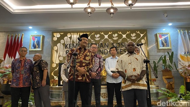 Menteri Hak Asasi Manusia (HAM) Natalius Pigai menyambangi kantor Menteri Sosial (Mensos) Gus Ipul. Kedua menteri membahas perlindungan bagi penyandang disabilitas melalui Peraturan Menteri HAM (Permenham).