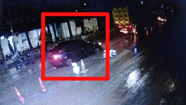 detikcom memperoleh foto tangkapan layar CCTV yang memperlihatkan mobil Toyota Vios itu melaju tanpa 1 ban. Mobil bernopol B-1606-LB itu terekam CCTV saat memasuki kawasan Dermaga KCN Marunda.