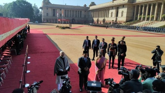 "Saya ingin mengucapkan penghargaan terdalam yang saya terima hari ini. Saya dijemput secara resmi ke India. Indonesia menganggap India sebagai teman yang sangat baik," kata Prabowo usai upacara kenegaraan di Istana Kepresidenan Rashtrapati Bavan, New Delhi, India, Sabtu (25/1/2025).